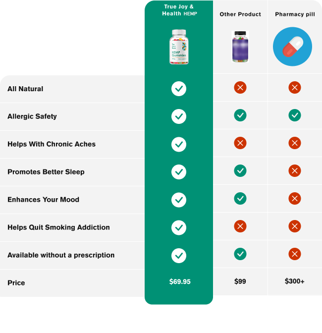With True Joy & Health Hemp, you always get the proper dose in your body, so you feel good all day long. And it gives you superior absorption compared to all other Hemp capsules or gummies on the market.
